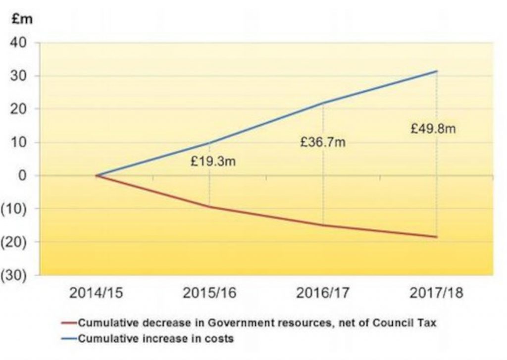 Trafford will cut its spending by £4,451,000 from £159.003m to £154.552m or 2.8%. When you take cost pressures into account it’s £17m… and it’s going to get worse.