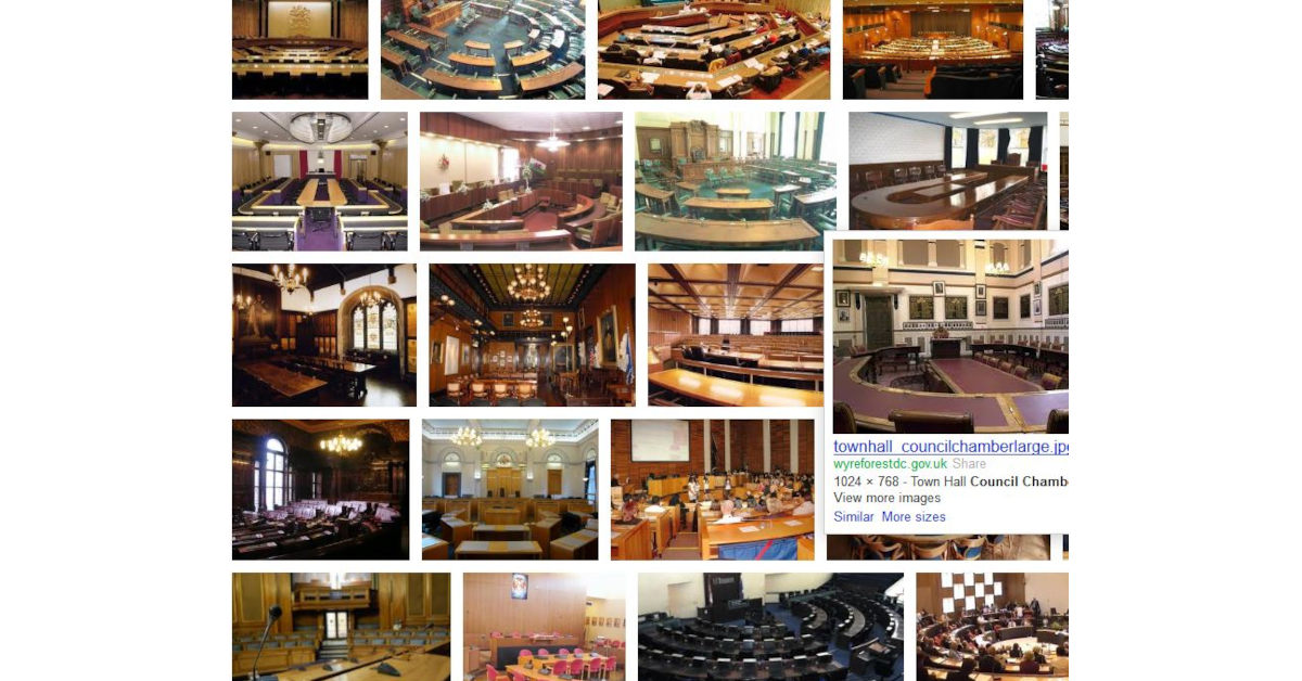 I don’t want to single out Trafford. Most councillors I meet from other towns tell me similar stories. And if you Google ‘Council Chamber’ and click on images, your screen fills with thumbnails of identikit forums facing a throne upon which the mayor presides from Aberystwyth to York. The lack of variety is striking but Trafford is the place I know.