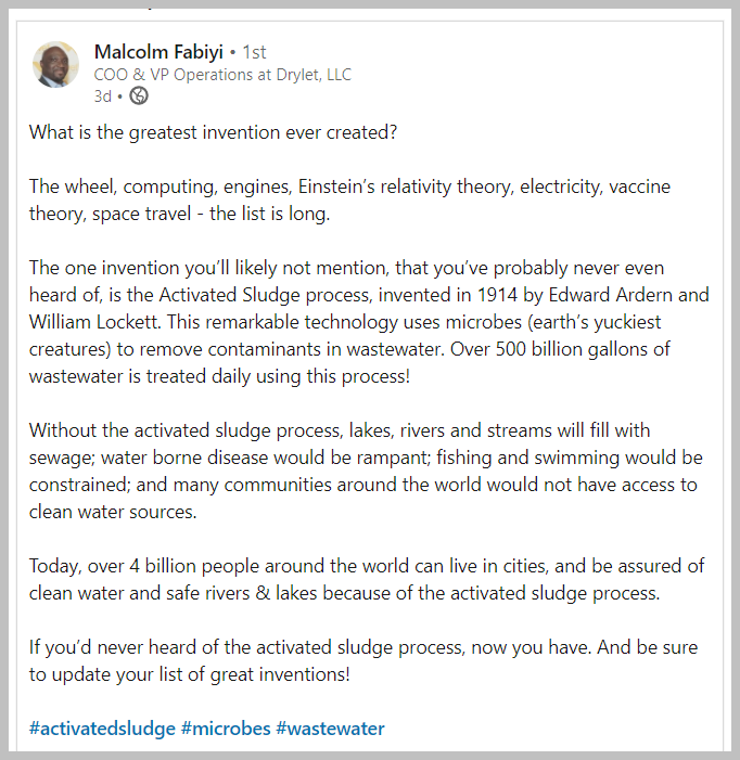 The process Ardern and Lockett developed is still in use all over the world. The demand on it has never been greater. Of course it’s been improved and there are new investments coming through.
