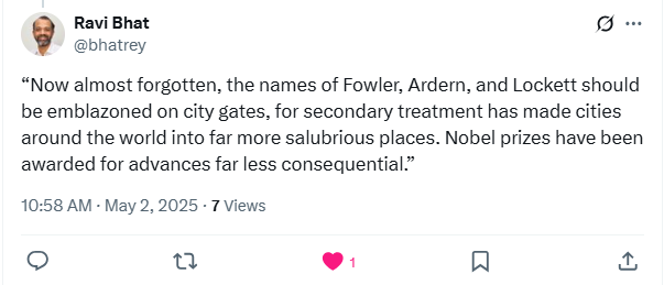 How did we come to miss celebrating the centenary in 2014? Ardern and Lockett are celebrated by sewage engineers all over the world. Why no statues, no streets named after them? Are we ashamed of poo?