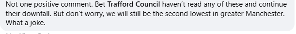It’s at this point that the proverbial hit the fan. The fact that Trafford is one of a small number councils requiring this facility has shocked residents. Social Media has been on fire. It’s not been pleasant.